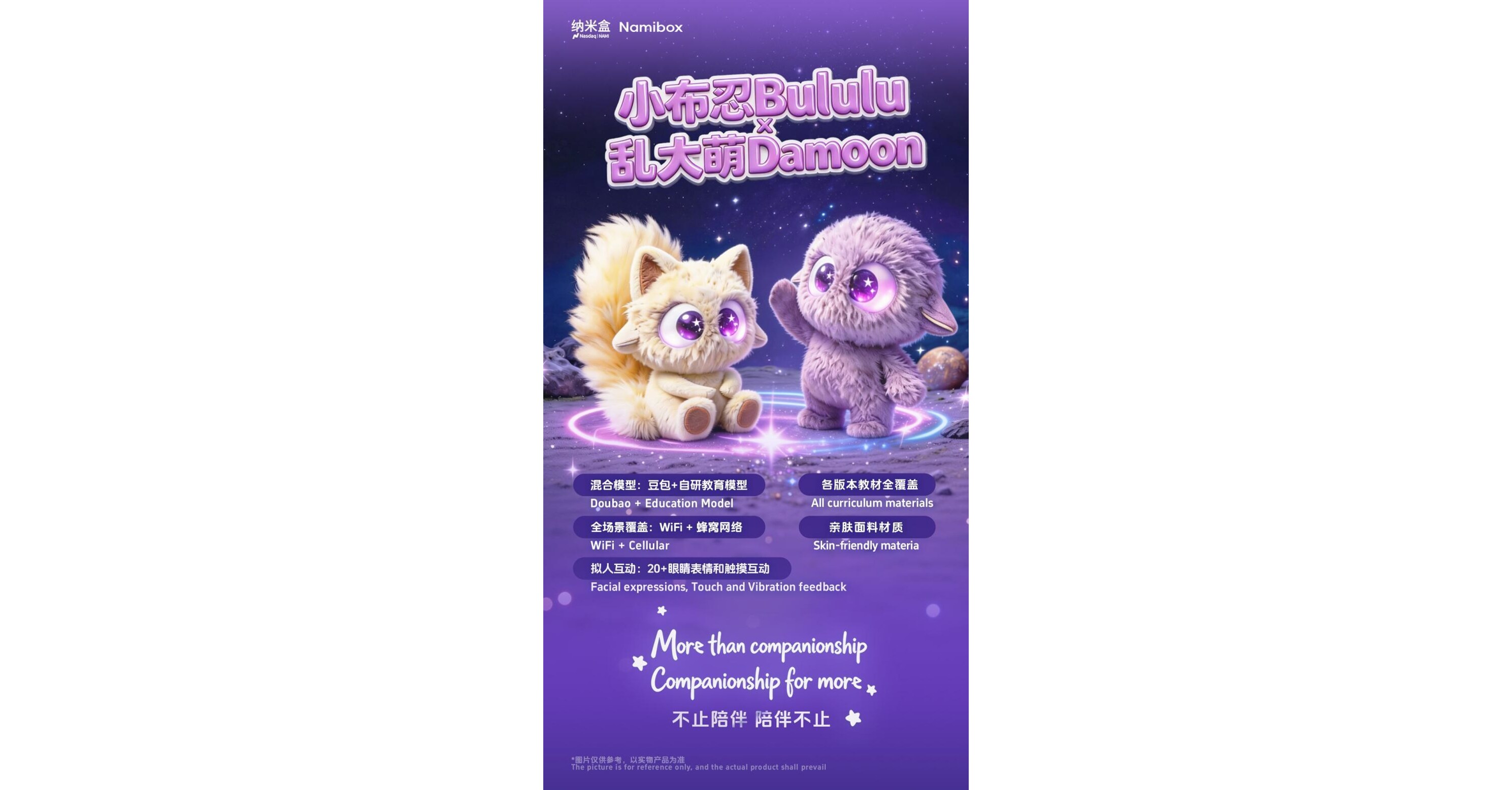 The NAMI COMPANION Series introduces a differentiate”More than companionship and Companionship to for”model, combining emotional engagement with structured educational content. Targeted at children aged 3 to 12, this product supports all scenarios for children, delivering constant companionship not only indoors via Wi-Fi but also outdoors with cellular connectivity, extending NamiBox’s learning ecosystem beyond traditional screen-based formats. The initial product lineup will include Bululu and Damoon, two AI-powered companion figures developed to deliver personalised, interactive learning experiences.